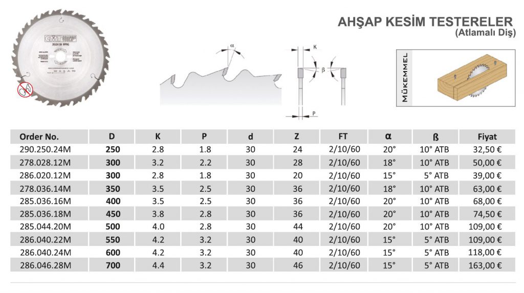 AHŞAP ve KAPLAMALI MALZEME KESİM TESTERELER (Sık Diş)